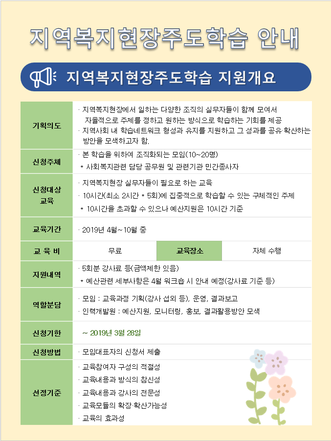[공고] 2019 지역복지현장주도 (학습 모임) 모집 안내