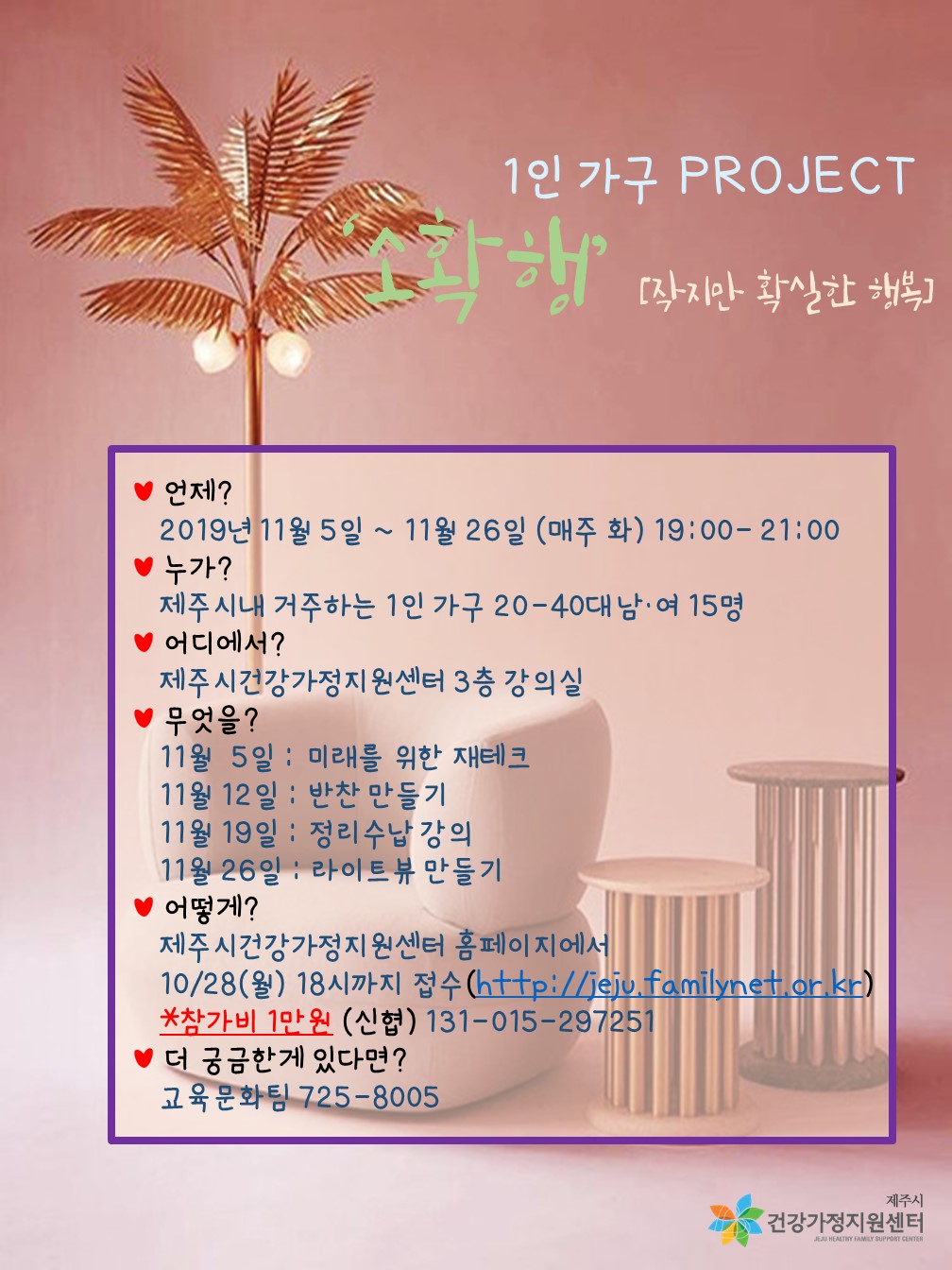 [제주시건강가정지원센터] 1인 가구 프로젝트 '소확행' 참가자 모집