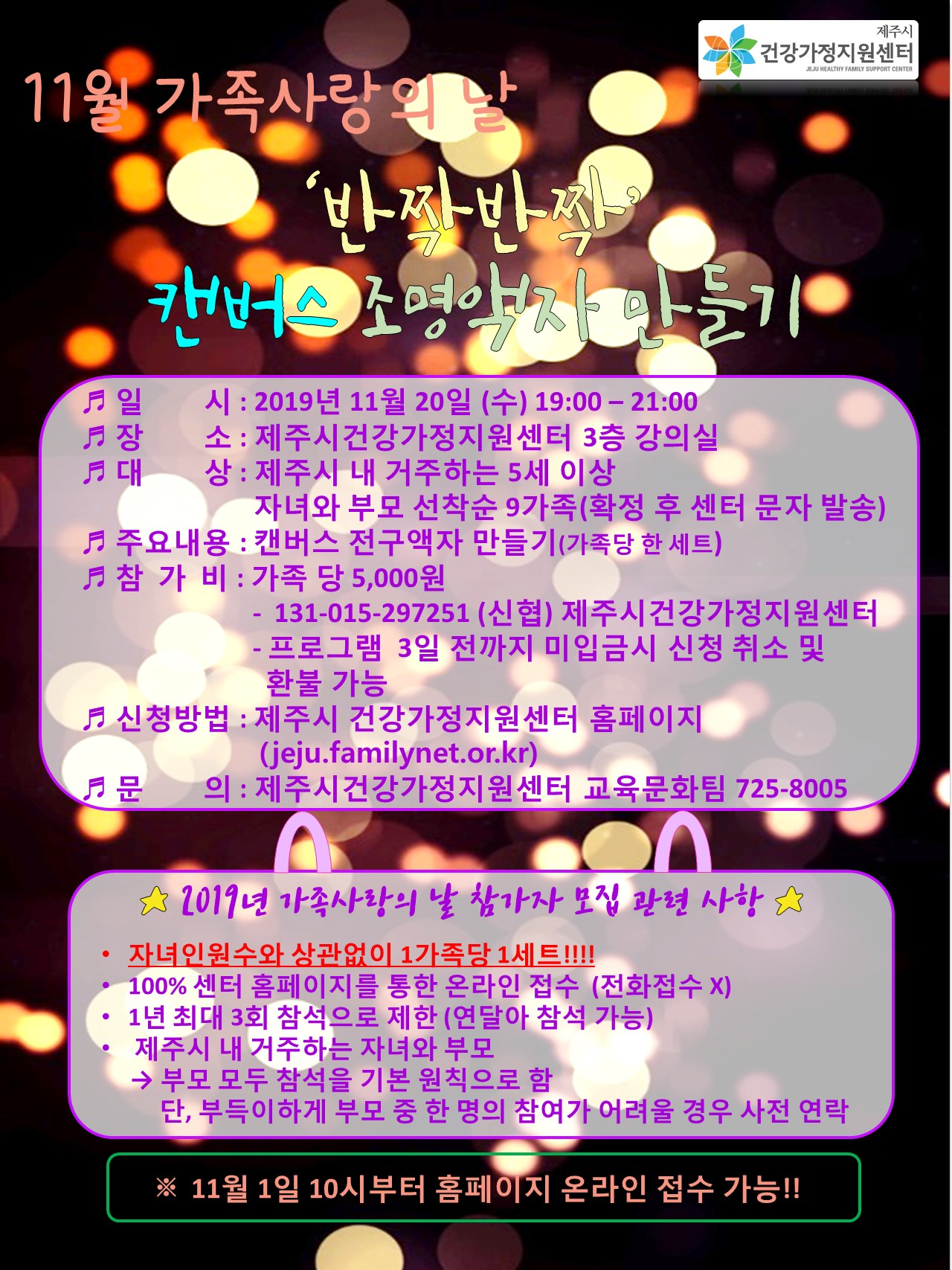 [홍보]제주시건강가정지원센터 11월 가족사랑의 날 '반짝반짝' 캔버스 조명 액자 만들기