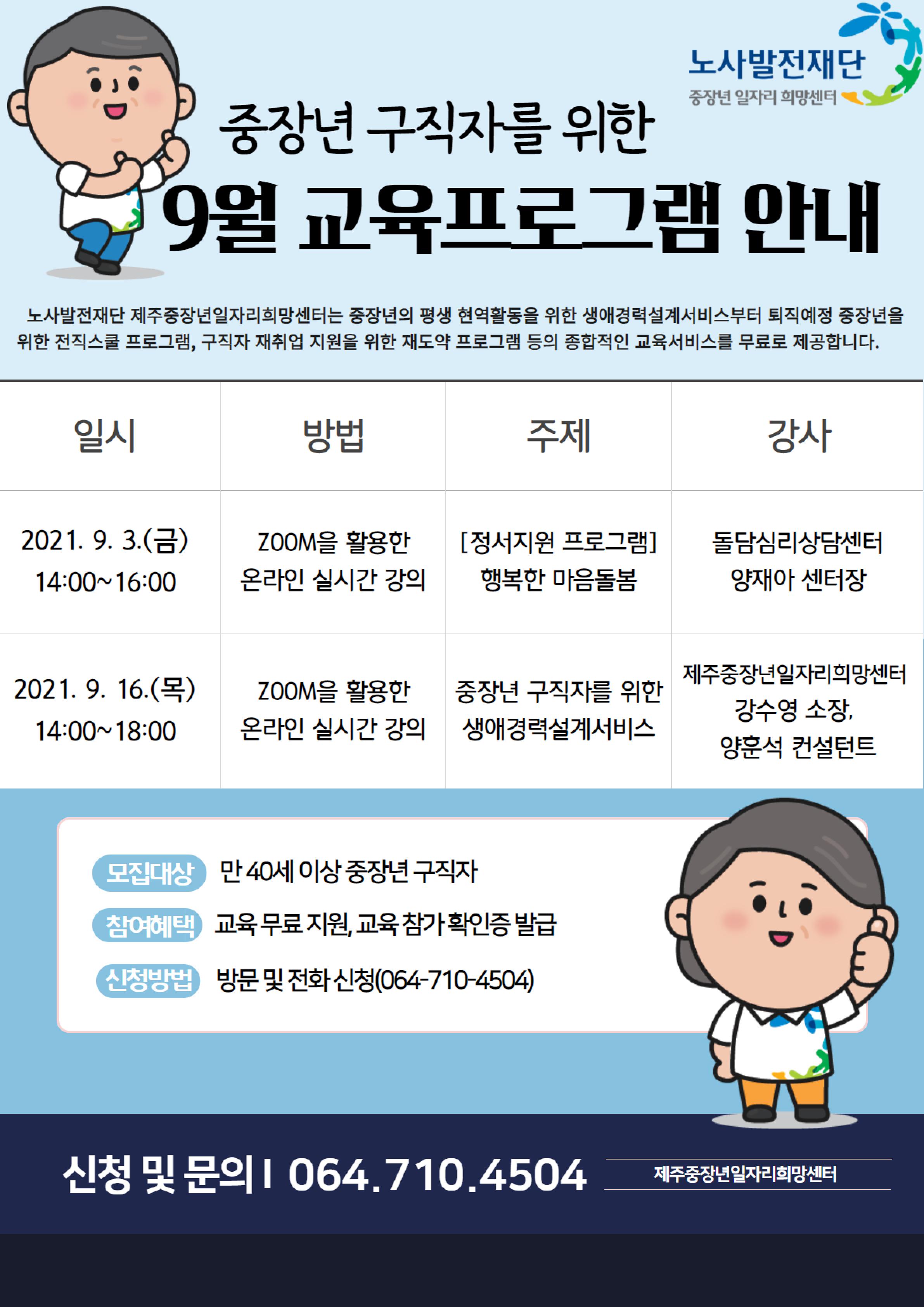 제주중장년일자리희망센터 9월 교육프로그램 안내