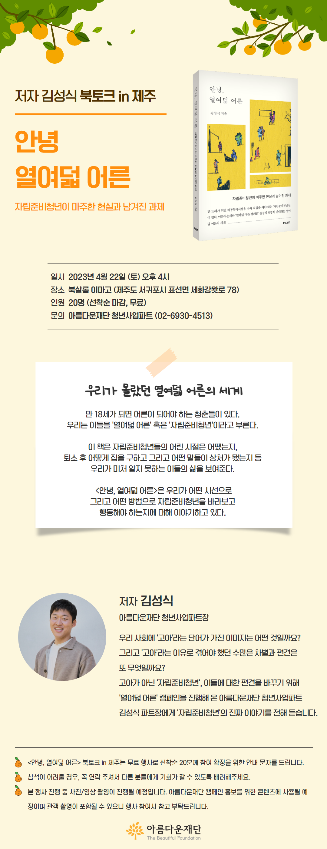 [아름다운재단] '안녕, 열여덟 어른' 북토크 in 제주에 초대합니다(4/22)
