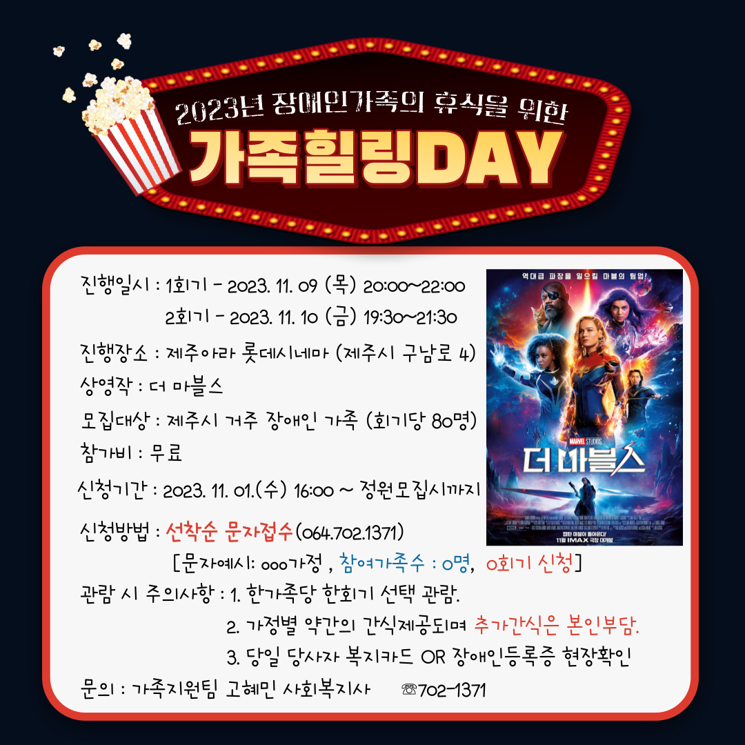 제주시장애인가족지원센터 가족프로그램 가족영화관람 참여자 모집 안내
