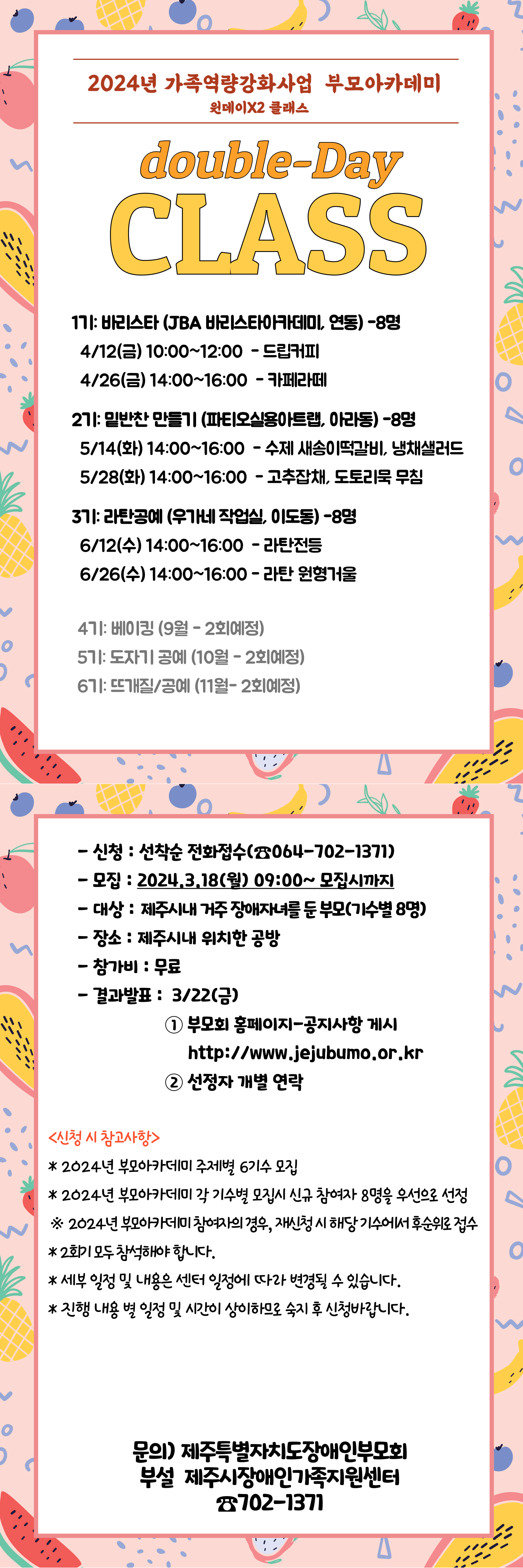 제주시 거주 장애자녀를 둔 부모님들의 많은 관심과 참여 부탁드립니다.