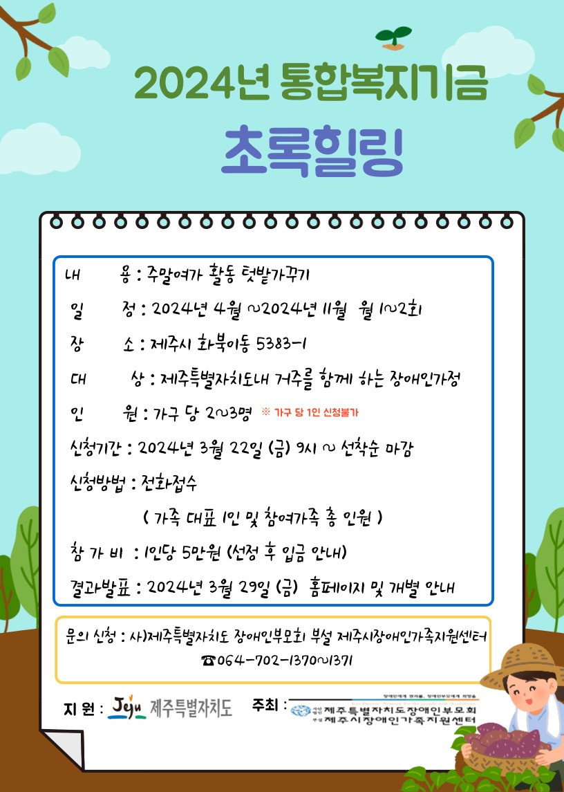[장애인가족의 주말여가활동 텃밭가꾸기 '초록힐링'] 참여자 모집