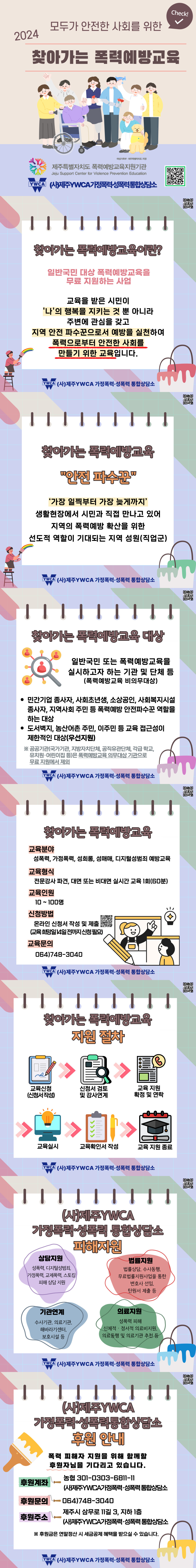 2. 2024년 여성가족부와 제주특별자치도 수탁 폭력예방교육 지역지원기관으로 선정됨에 따라 『찾아가는 폭력예방교육 』을 시행합니다.