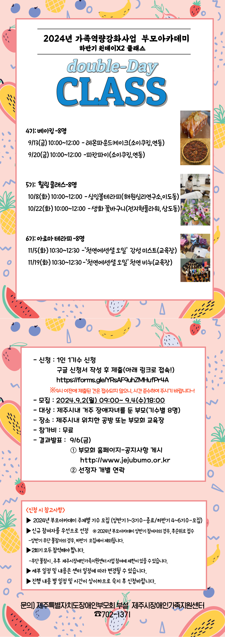 2024년 제주시장애인가족지원센터 장애인가족역량강화사업 '부모아카데미(하반기)' 참여자 모집