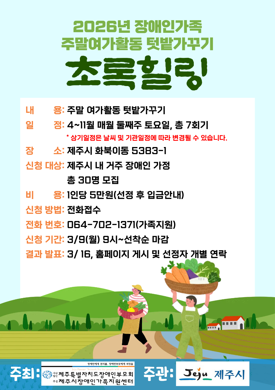 2026년 장애인가족 주말여가활동 텃밭가꾸기 초록힐링 참여자모집