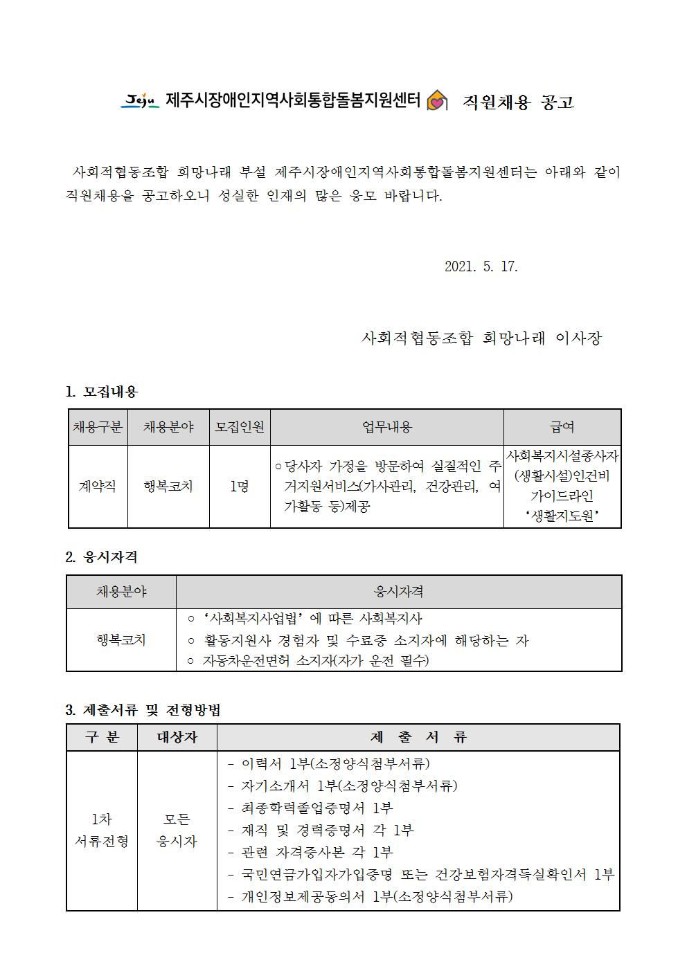 장애인지역사회통합돌봄 '돌봄인력' 행복코치 모집