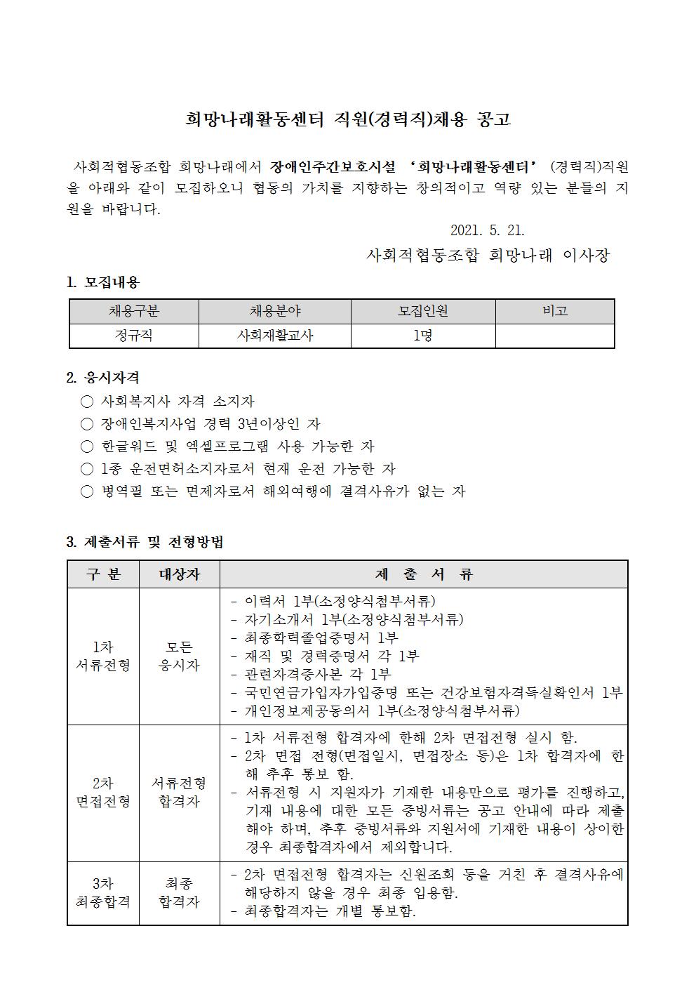 2021년 희망나래활동센터 신규직원 채용 공고문.hwp