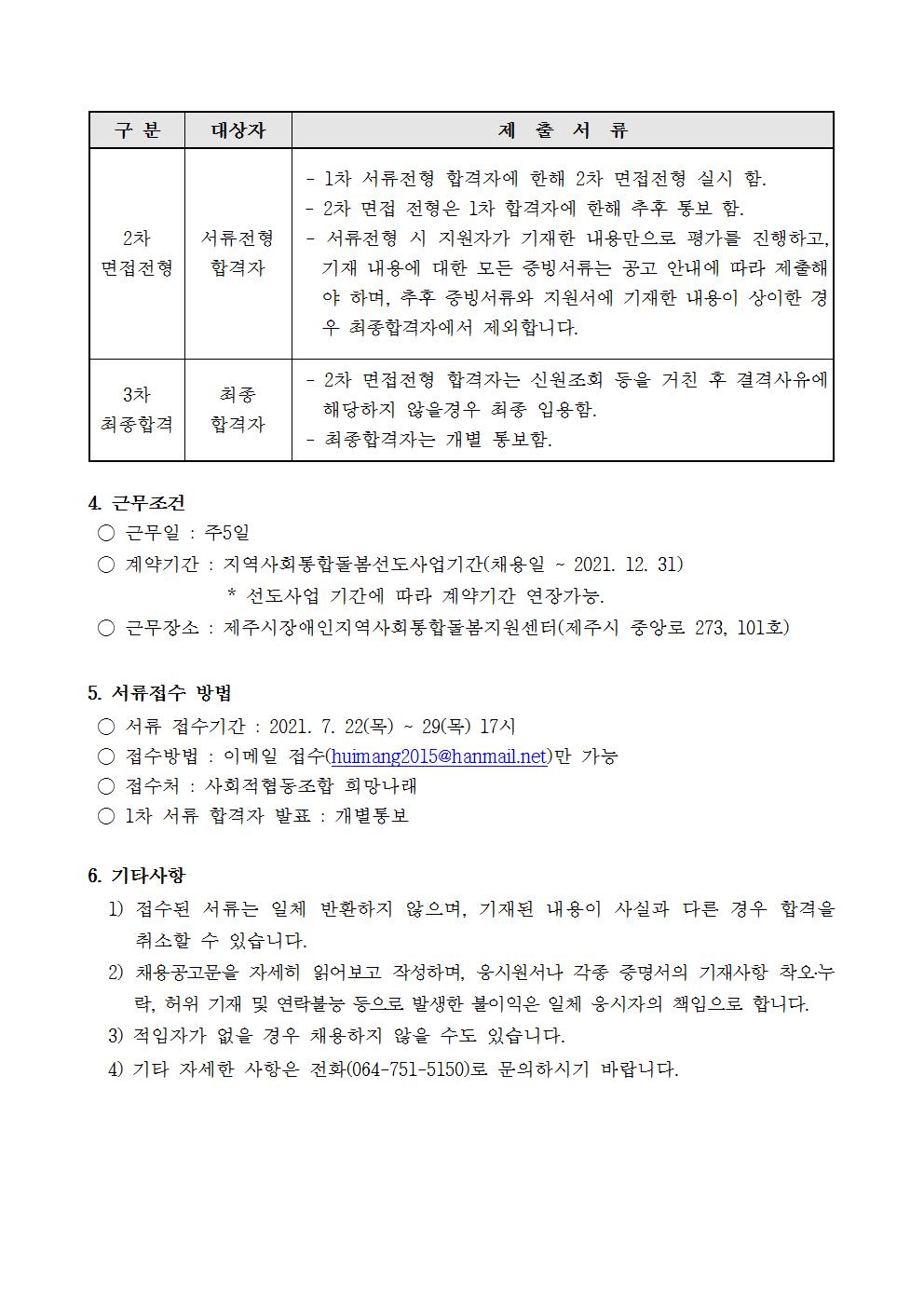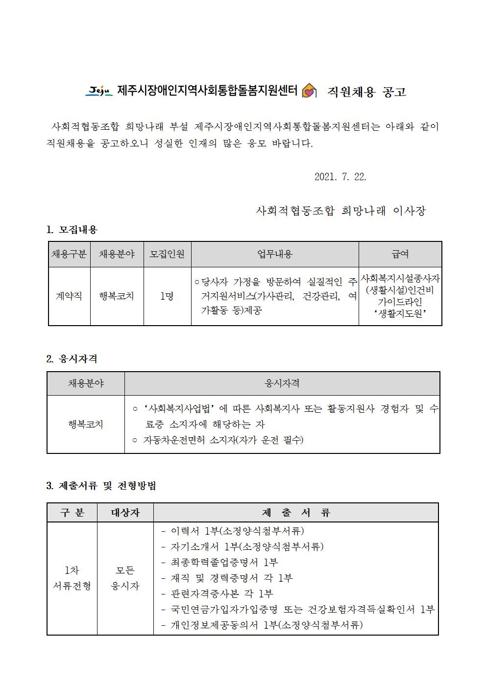 [제주시장애인지역사회통합돌봄지원센터] 행복코치 (긴급)채용 공고