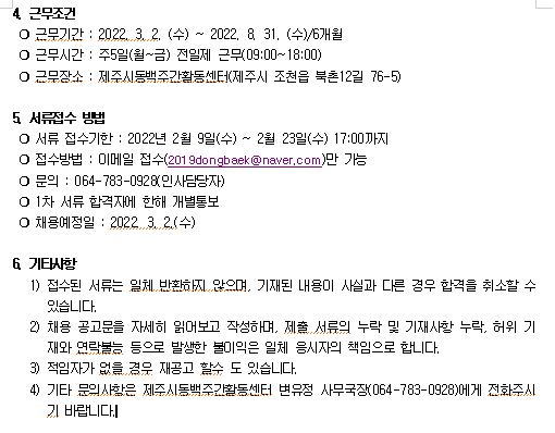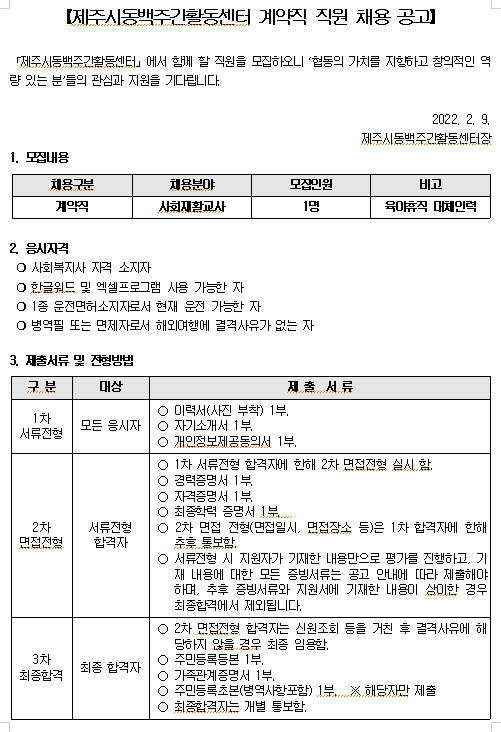 제주시동백주간활동센터 육아휴직대체인력 채용공고
