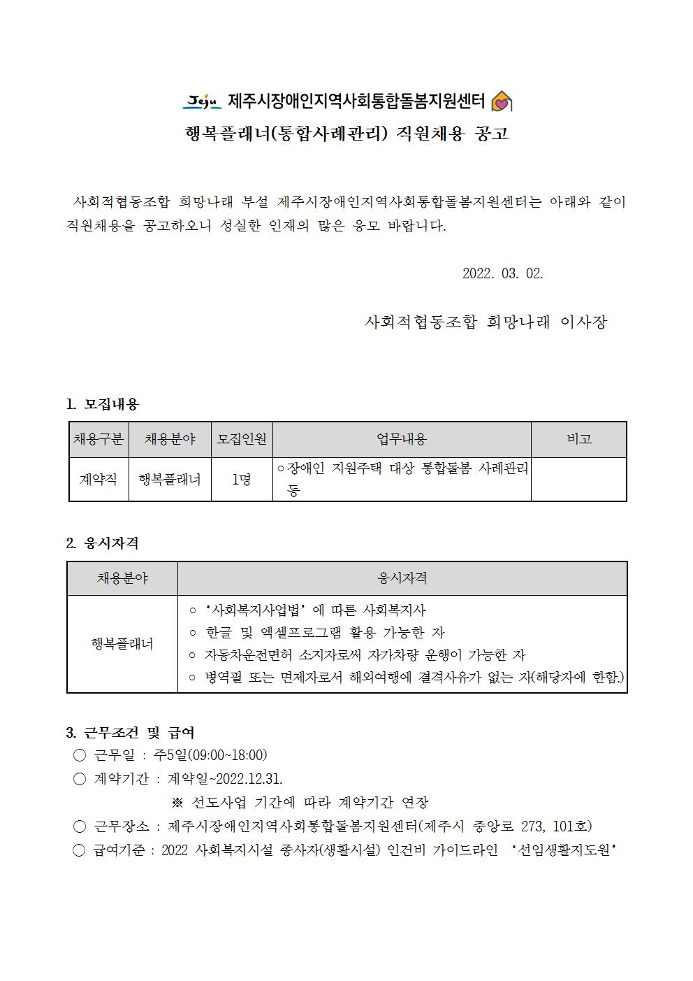채용공고문(행복플래너).hwp