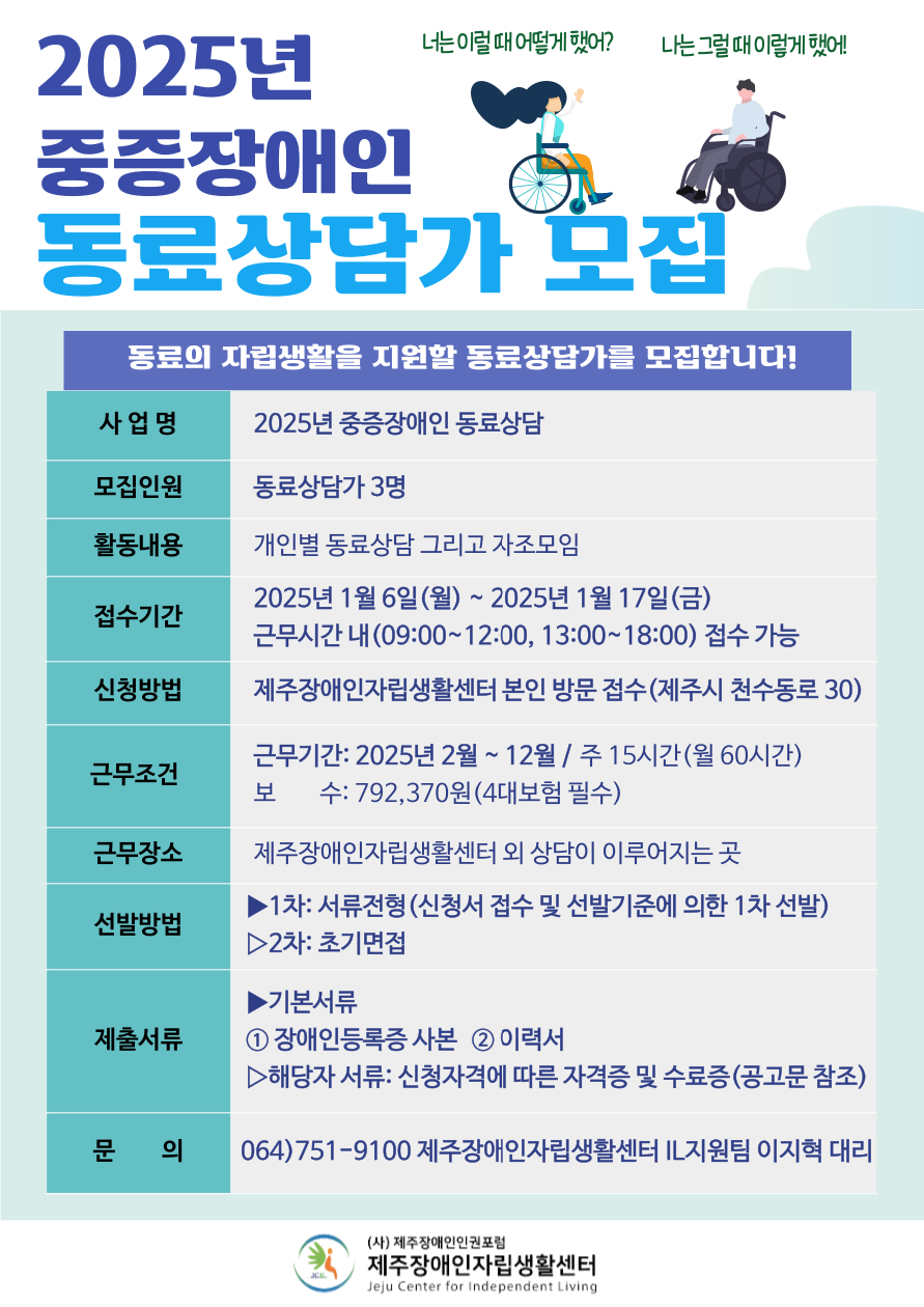 접 수 처 : 제주장애인자립생활센터 IL지원팀