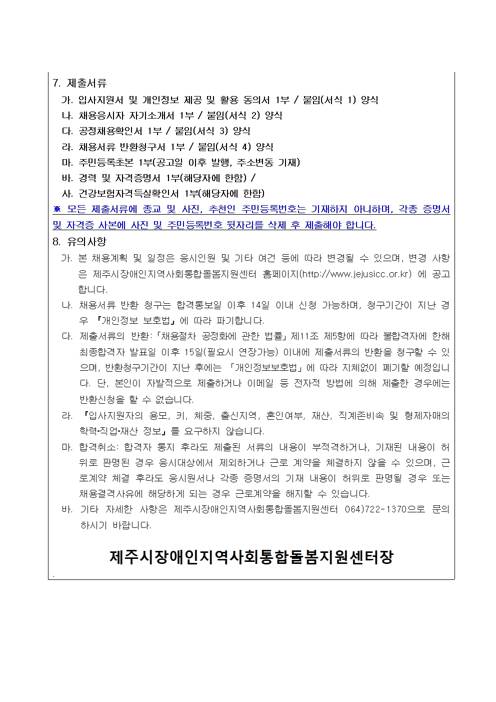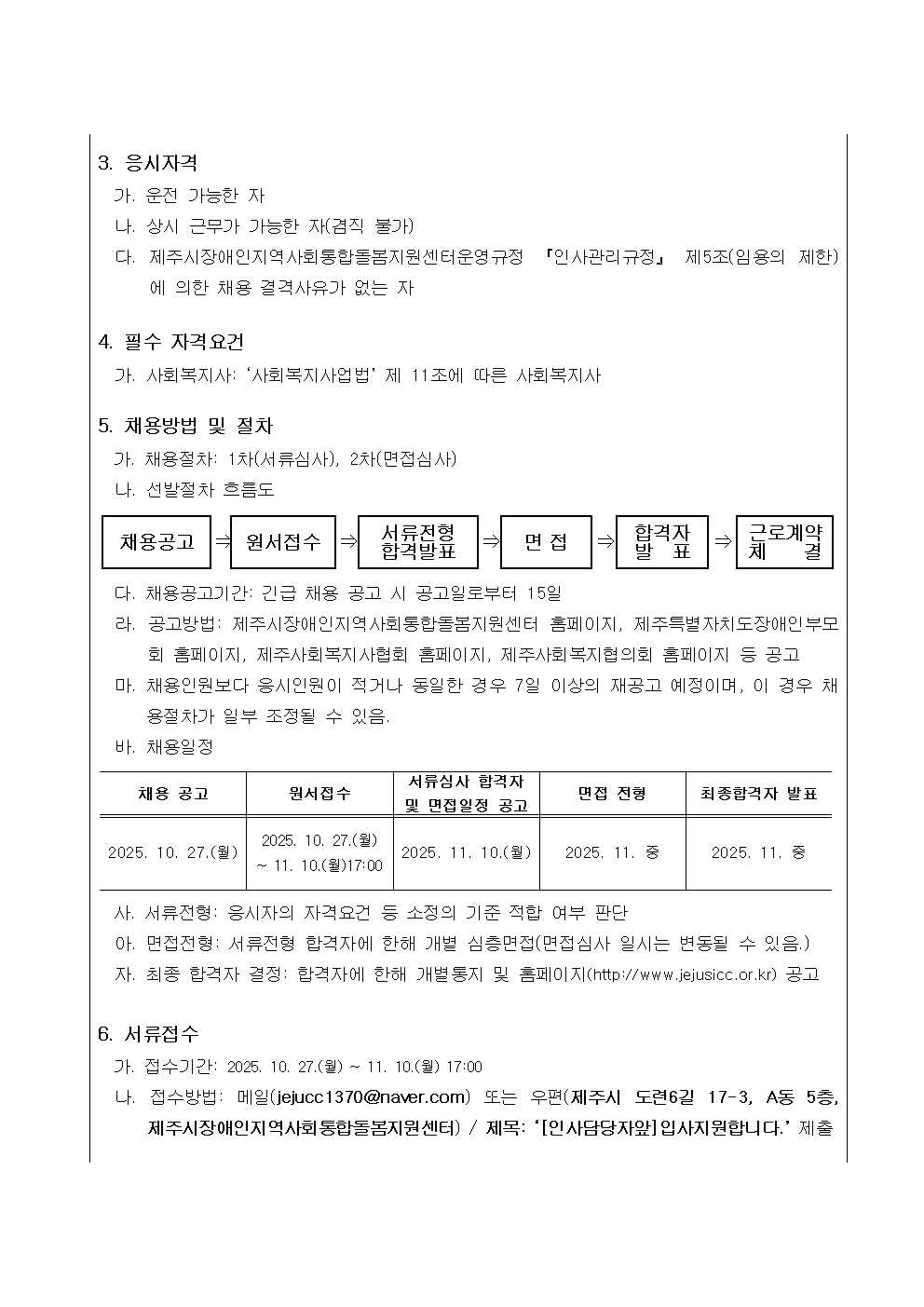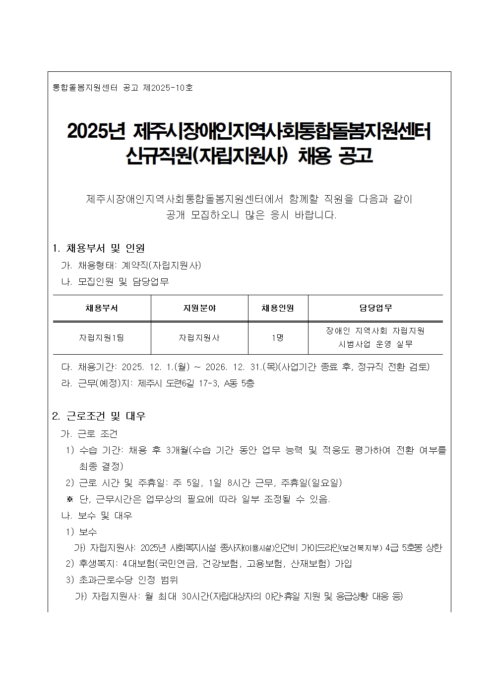 제주시장애인지역사회통합돌봄지원센터 신규직원(자립지원사)채용 공고
