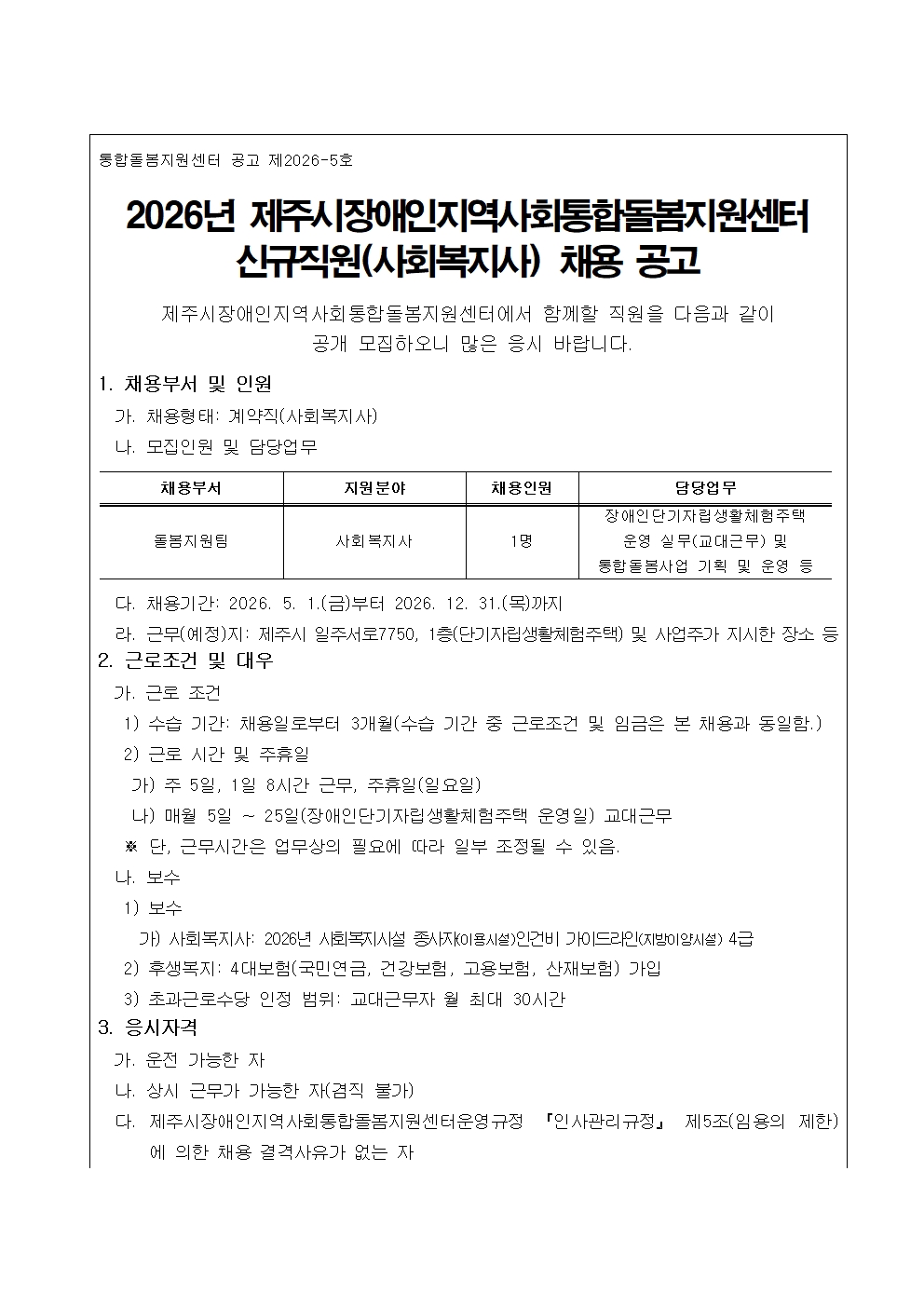 [공고] 2026년 제주시장애인지역사회통합돌봄지원센터 신규직원(사회복지사) 채용 공고.pdf
