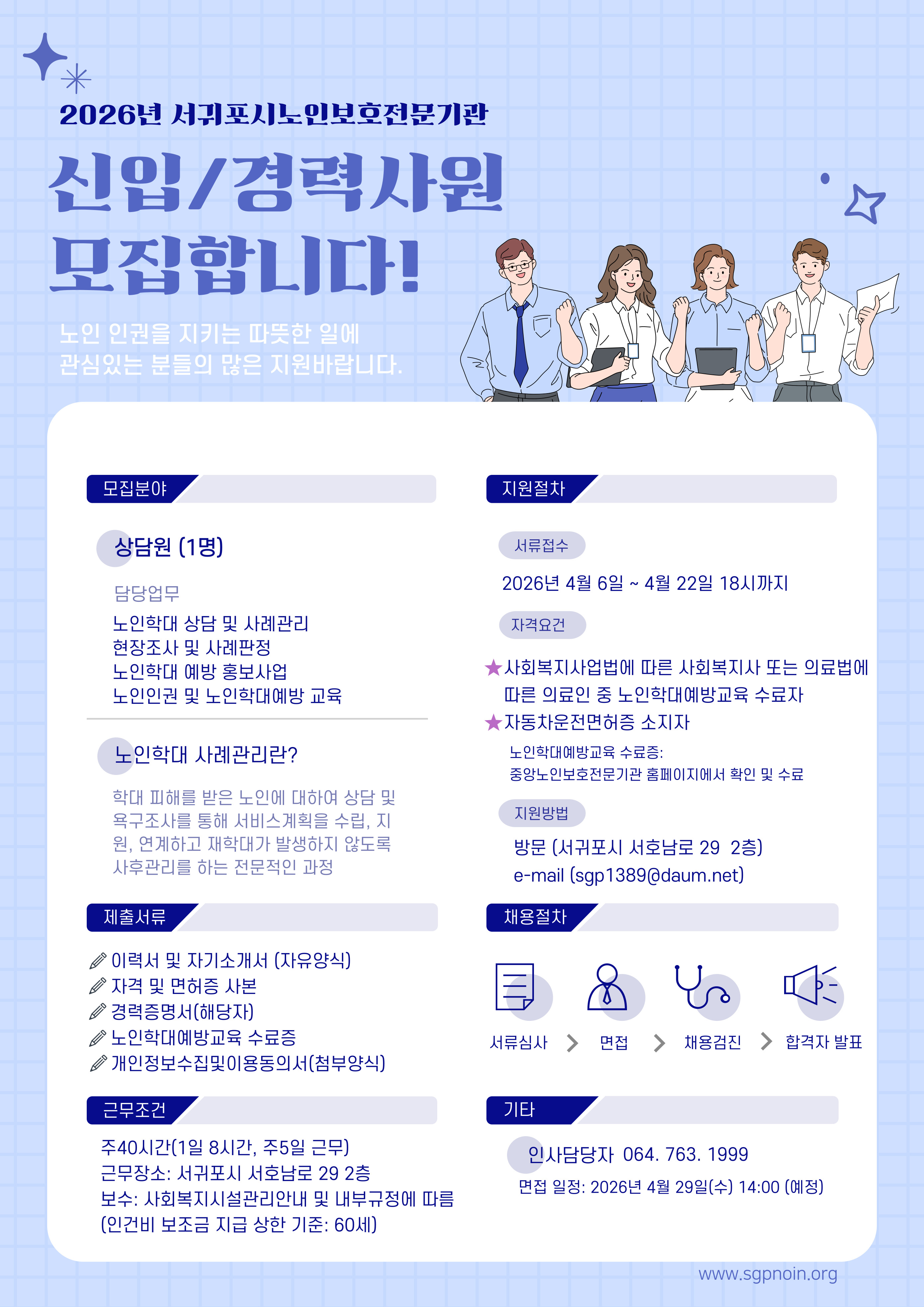 서귀포시노인보호전문기관 상담원 채용 공고(기간 연장)