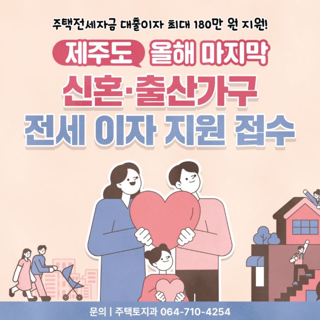 (온라인신청) 제주특별자치도 누리집 [건축.토지.주거 → 신혼부부 및 자녀 출산가구 전세이자 지원]
