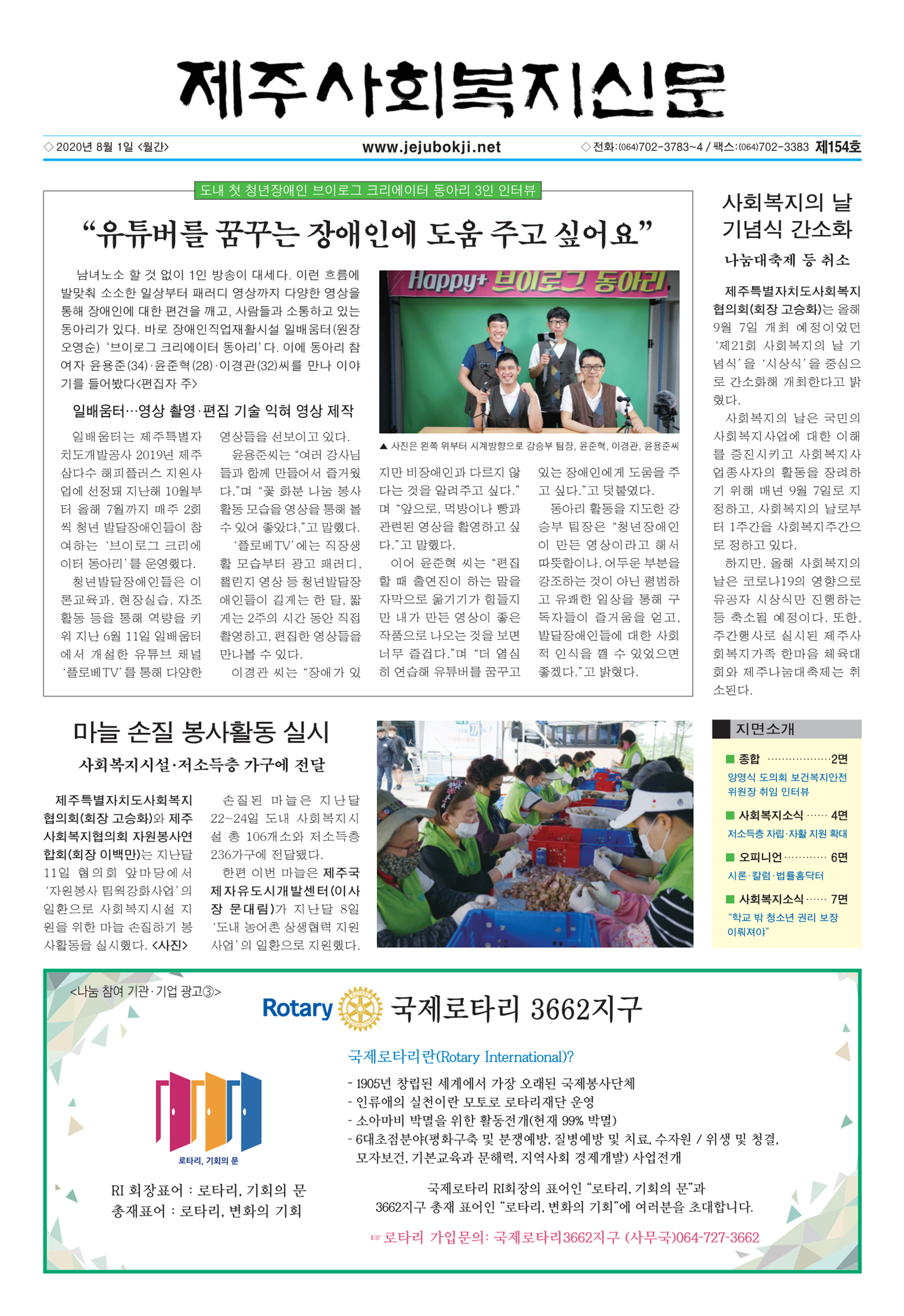 제주사회복지신문 제154호 (2020.8.1)지면소개