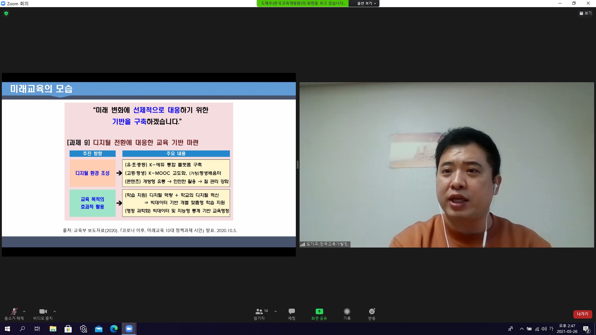 이날 강의는 도재우 부연구위원(한국교육개발원)을 강사로 초빙해 대면과 비대면 방식을 결합한 형태로 교육을 운영했고,