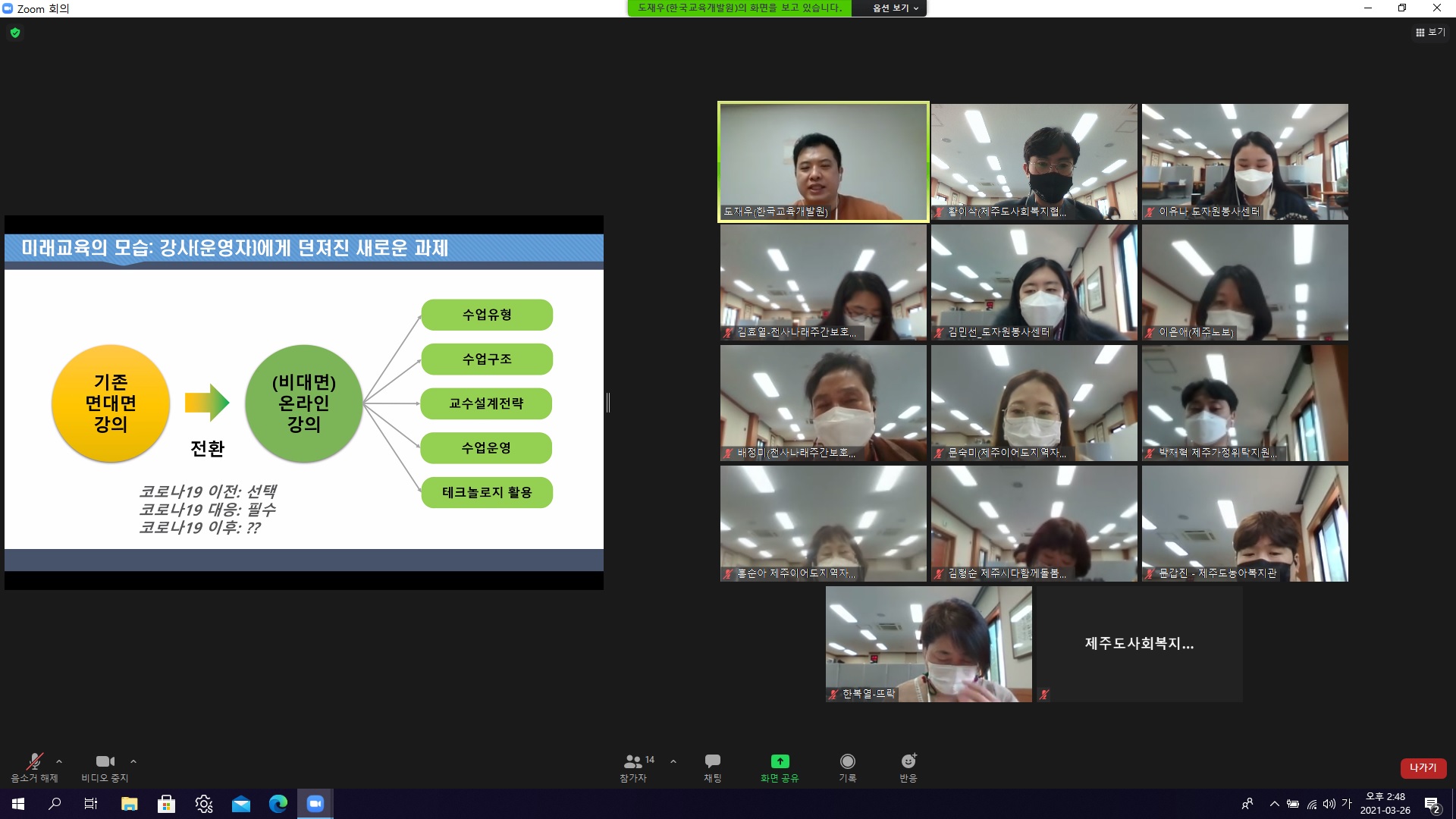 강의를 통해 도내 사회복지 현장에서 공간의 제약을 받지 않는 여러 형태의 강의 및 회의 운영에 도움이 되는 시간이었습니다.