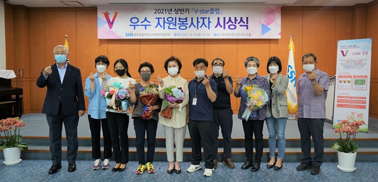 지난 28일(월) 자원봉사자 명예감 고취 및 사기를 진작시키고자 상반기 V-star클럽 우수 자원봉사자 시상식을 가졌습니다.