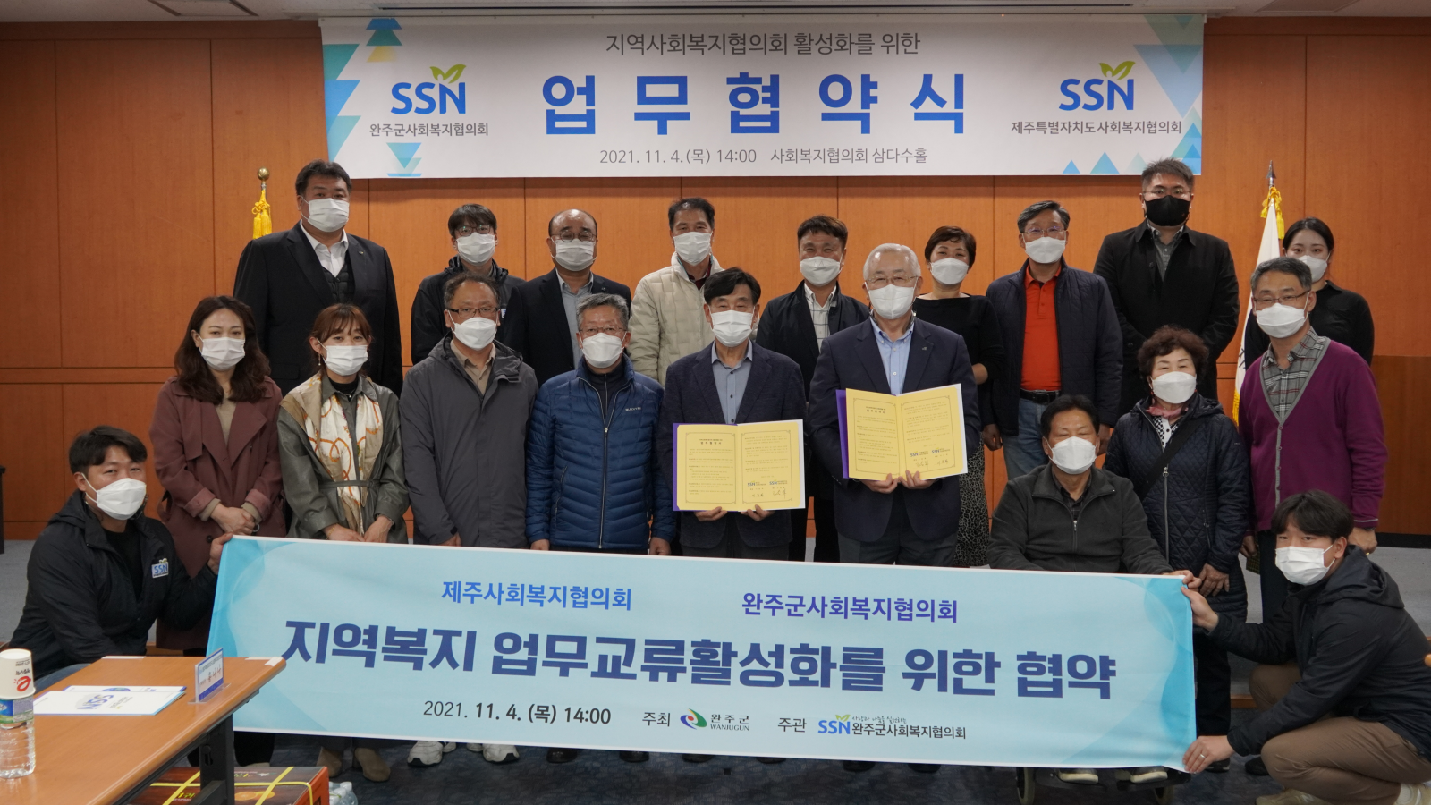 우리 협의회에서는 지닌 11월 4일 14:00, 삼다수홀에서 완주군사회복지협의회와 지역사회복지협의회 활성화를 위한 업무협약을 체결하였습니다.