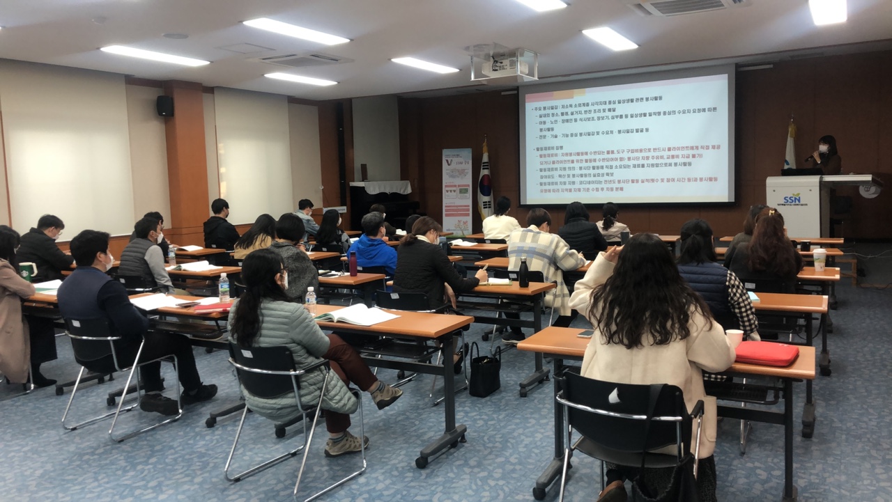 교육은 자원봉사관리자의 역할 및 소통, 사회복지자원봉사 인증관리의 최근 이슈 분석과 동향, 개인정보보호교육 등