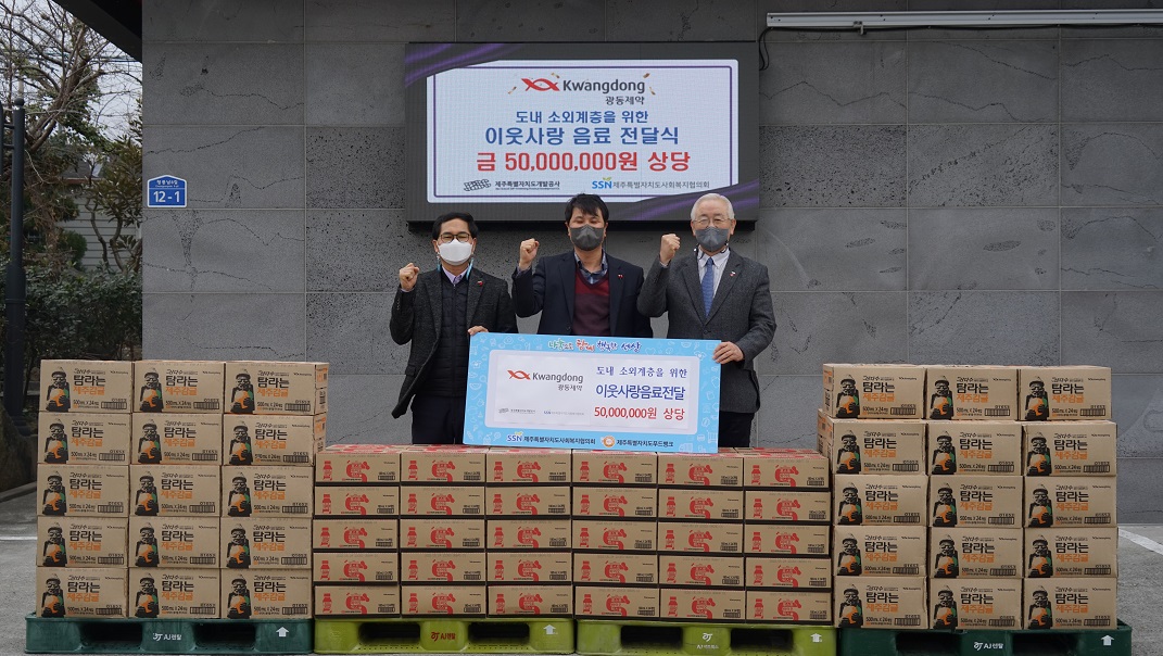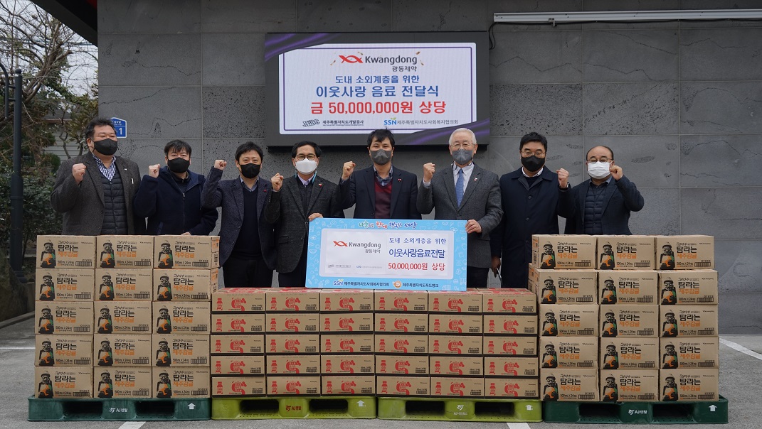 이날 전달식에는 광동제약 구준모 상무, 제주개발공사 김용덕본부장, 협의회 고승화 회장이 참여했습니다.