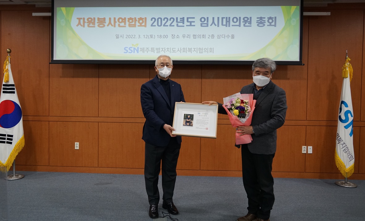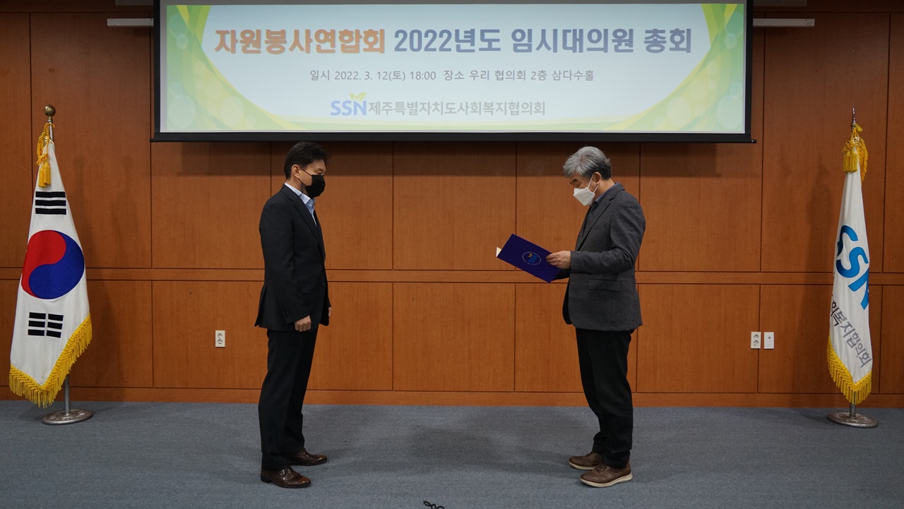 지난 3. 12(토) 협의회 2층 삼다수홀에서 2022년도 자원봉사연합회 임시대의원총회를 개최했습니다.