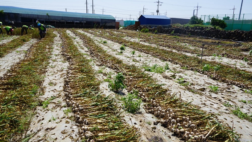 대정읍 하모리 마늘밭 농가를 방문하여 마늘수확 봉사활동을 실시했습니다.