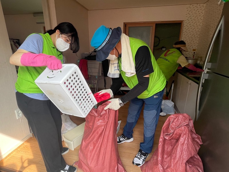 이날 주거환경개선사업은 홀로 사는 복지사각지대 가구를 찾아가 집안 내·외부 청소 및 각종 잡동사니와 방치된 쓰레기 치우기 등의 활동으로 진행됐습니다.