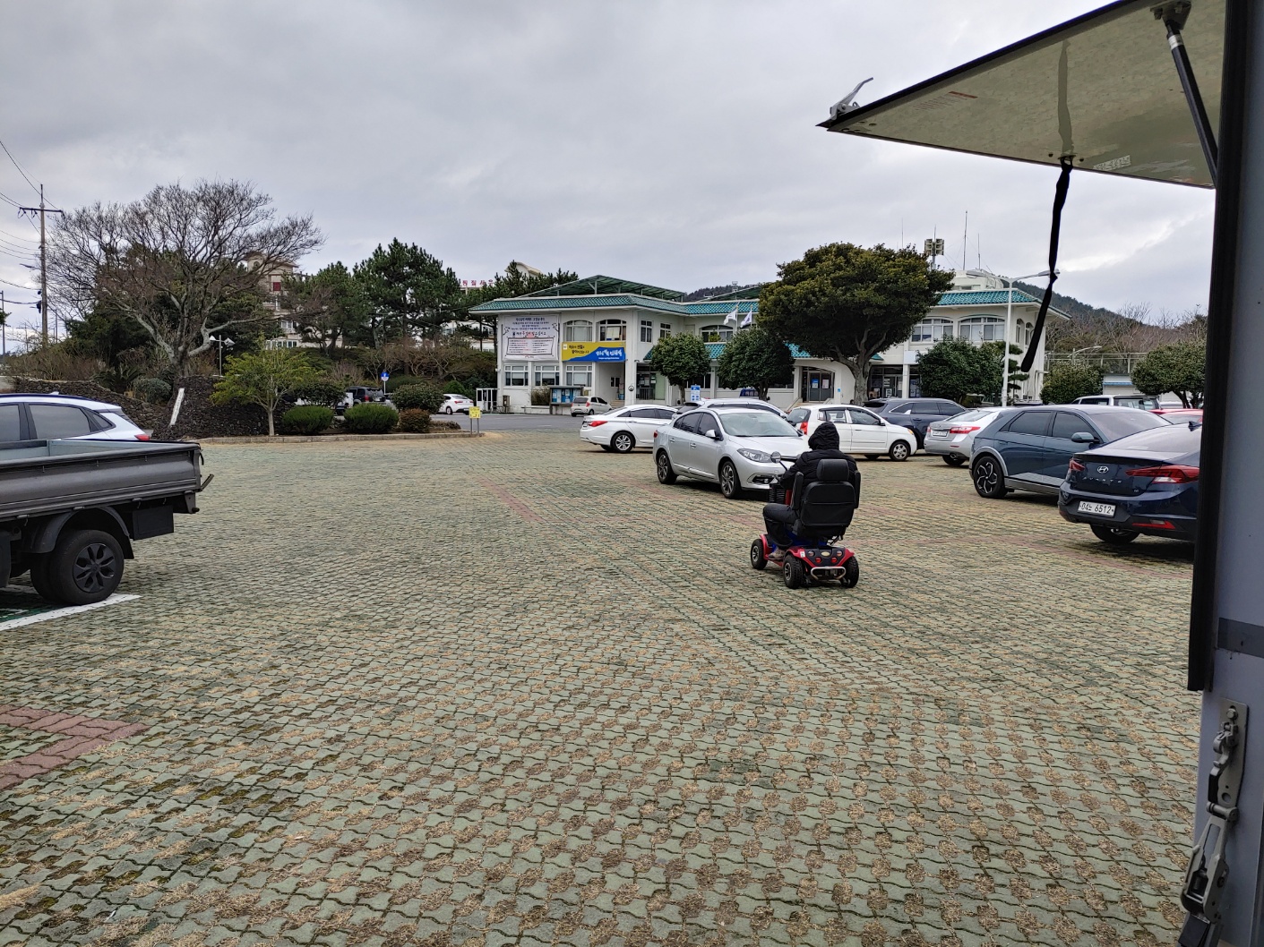 트럭을 몰고 성산읍사무소 도착 20여분 남은 도로 위에서 파란색의 우럭가방을 들고 계신 방문객분이 보여서