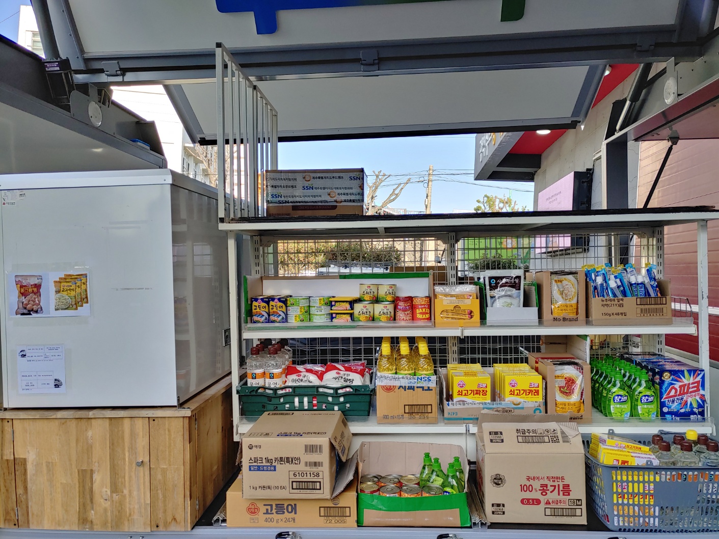 직접 찾아가 이동형 편의점 형태의 차량(1t트럭 개조)을 통해 기부식품을 제공하고
