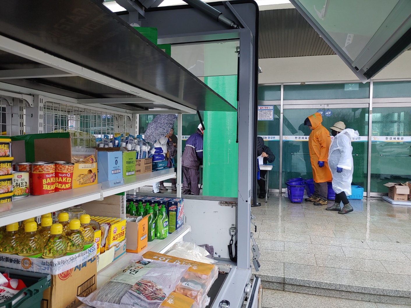 직접 찾아가 이동형 편의점 형태의 차량(1t트럭 개조)을 통해 기부식품을 제공하고