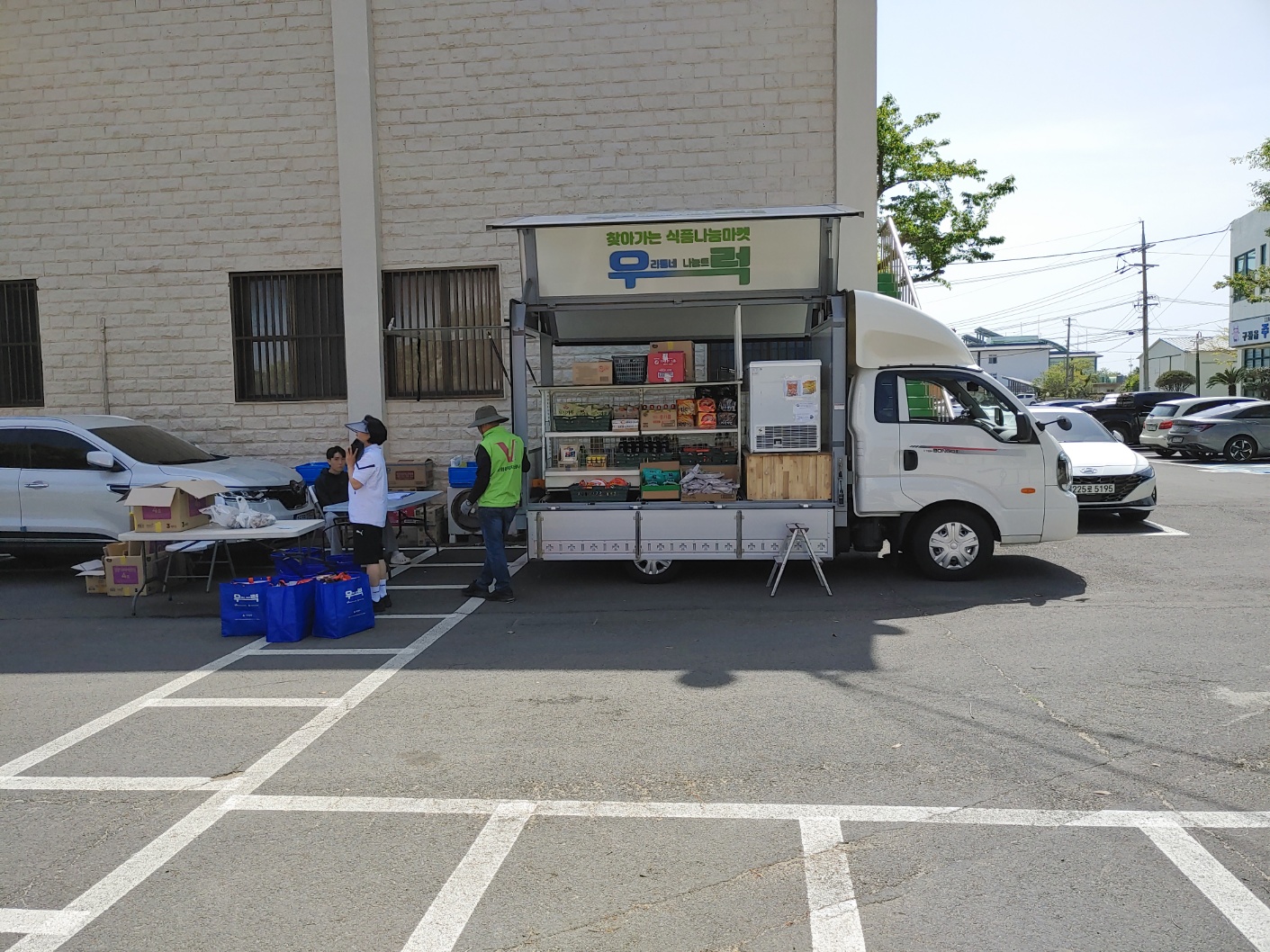 직접 찾아가 이동형 편의점 형태의 차량(1t트럭 개조)을 통해 기부식품을 제공하고