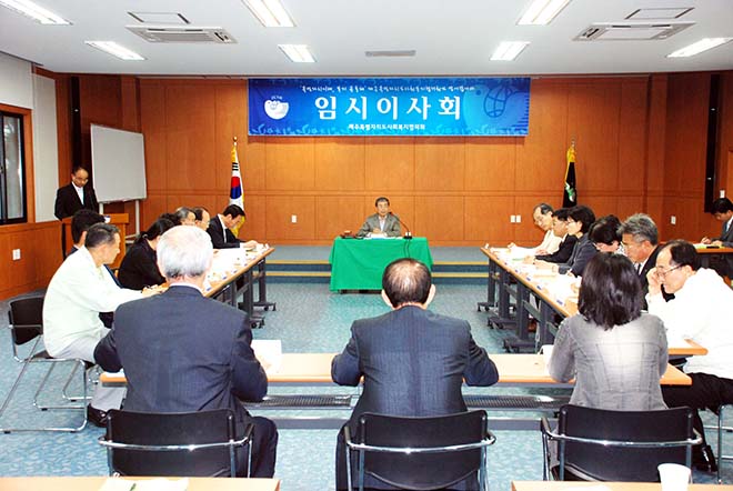 제주특별자치도사회복지협의회(회장 이동한)는 6. 16일 오후 협의회 삼다수홀에서 신관홍 부회장 등 25명이 참석한 가운데 2008년도 제1차 임시이사회를 개최했습니다.