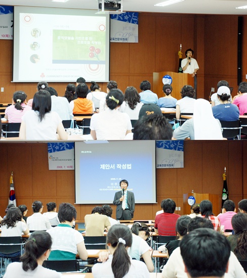 <제안서 작성 및 기획>교육이 지난 7. 10(목) 사회복지종사자 80여명이 참석한 가운데 시행되었습니다. 강의를 해주신 정병오 팀장님(서울시사회복지공동모금회)과 이원규 부대표님(도움과 나눔)을 비롯한 교육 참가자 여러분께 감사드립니다.