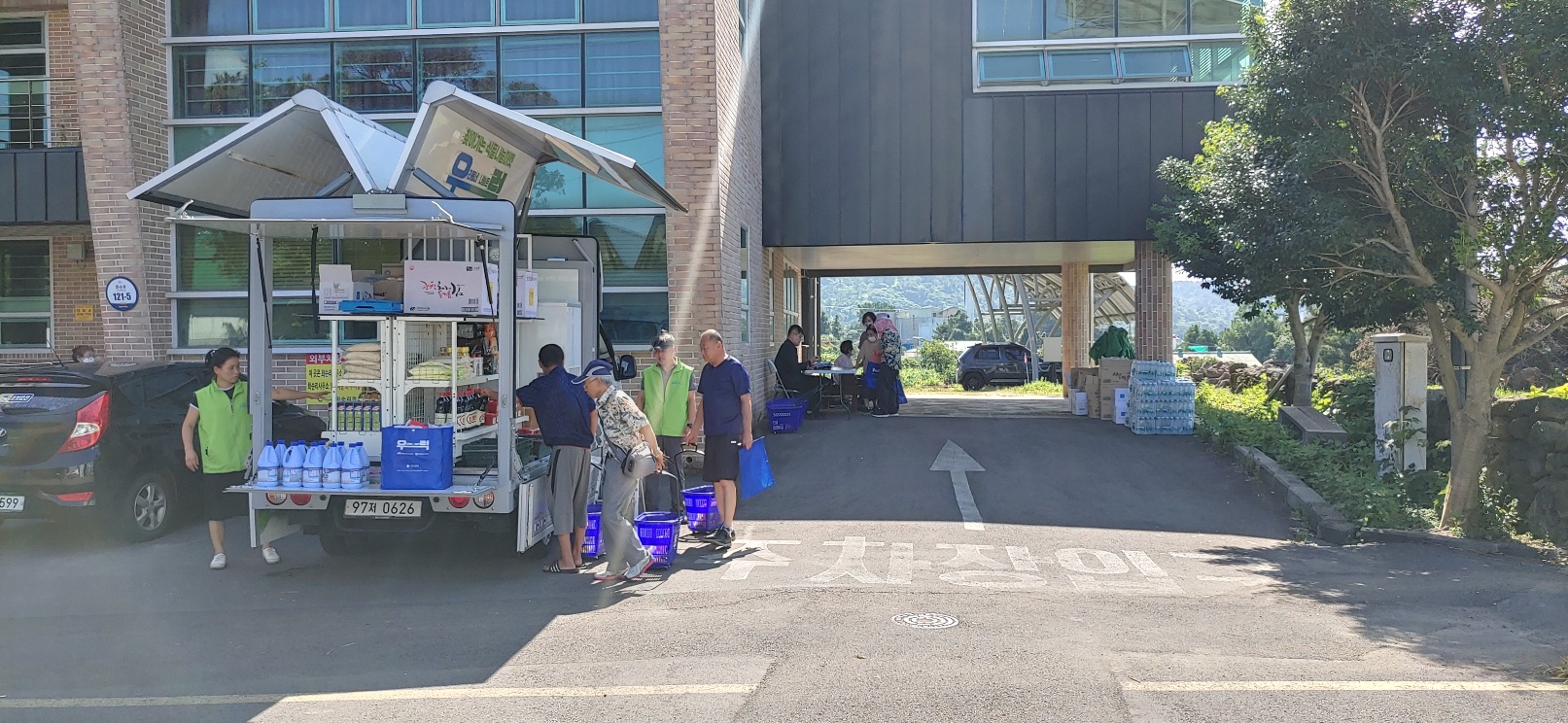 직접 찾아가 이동형 편의점 형태의 차량(1t트럭 개조)을 통해 기부식품을 제공하고