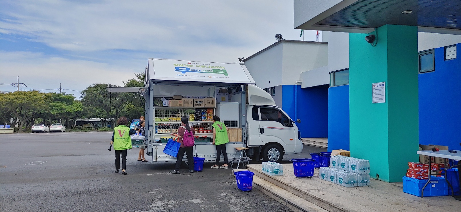 직접 찾아가 이동형 편의점 형태의 차량(1t트럭 개조)을 통해 기부식품을 제공하고