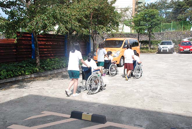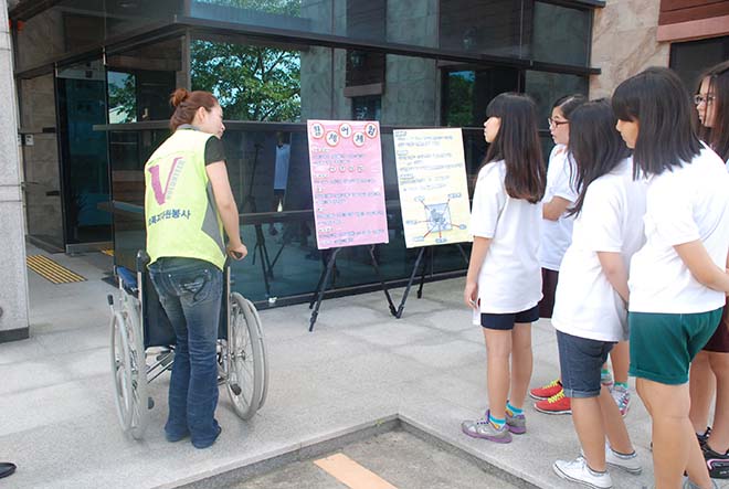 우리 협의회에서는 8월 31일과 9월 10일, 중앙여자중학교 1, 2학년 학생 60여명을 대상으로 사회복지 이해 교육과 장애체험 교육을 실시하였습니다.