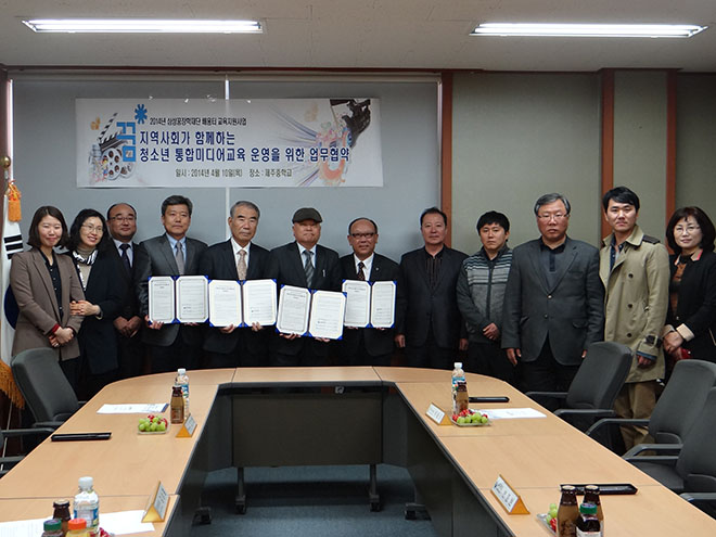 우리 협의회에서는 지난 4. 10일, 제주중학교에서 지역사회가 함께 하는 청소년 통합미디어교육 운영을 위한 업무협약을 체결했습니다.