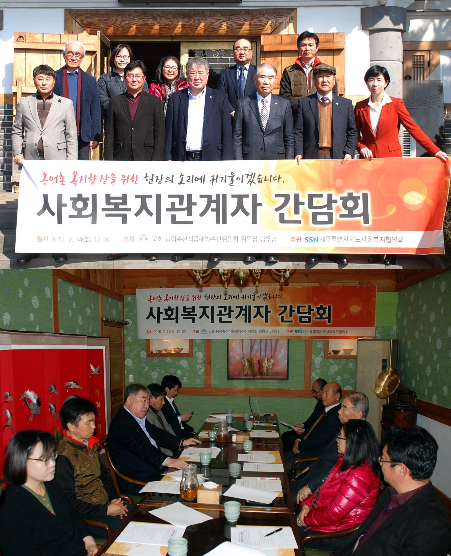 이 날 간담회에서는 김우남 위원장과 고치환 회장을 비롯한 사회복지관계자 10여명이 참석하여 초고령화사회에 진입하고 있는 읍면지역 복지향상에 따른 현안과 제도개선 방안 등이 논의되었습니다.