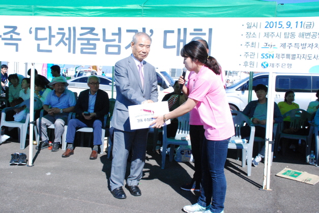 2015 사회복지가족 단체줄넘기 대회가 지난 11일 오후 제주시 탑동공연장 일대에서 20개팀 300여명이 참여한 가운데 진행됐습니다.