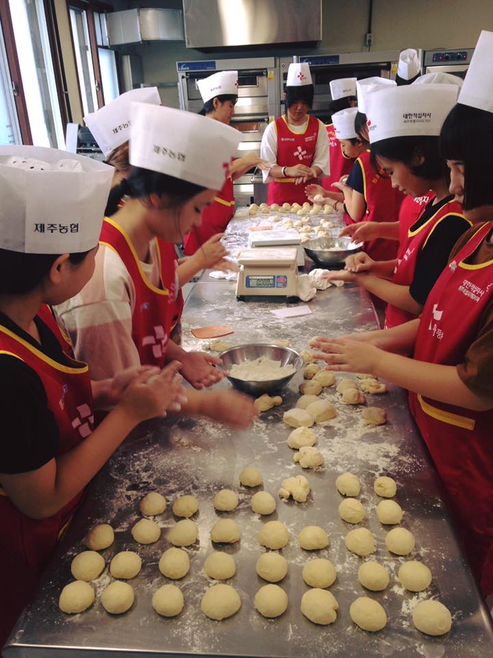 오늘 기부된 빵 150개는 적십자에서 진행한 자원봉사체험학교에 참여한 중앙여중 23명의 학생들이 직접 만든 빵입니다.