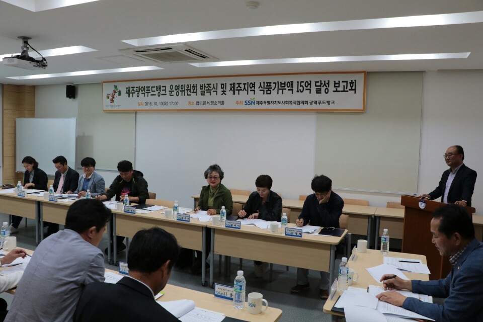 [사진1] 제주광역푸드뱅크 운영위원회 발족식이 지난 13일 오후 5시 제주사회복지협의회 1층 바람소리홀에서 개최됐다.