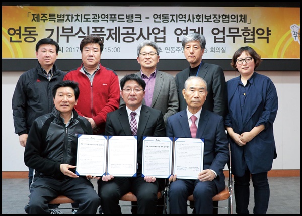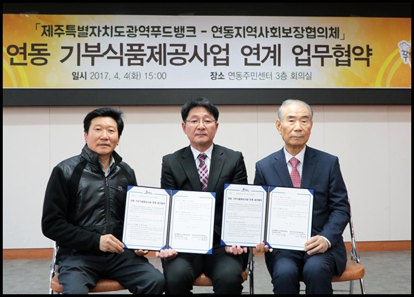 우리협의회가 운영하는 제주특별자치도광역푸드뱅크(대표 고치환)와 연동지역사회보장협의체(김이택,홍순희 공동위원장)가 지난 4일(화) 15시에 연동주민센터 3층 회의실에서 업무협약을 진행했습니다.