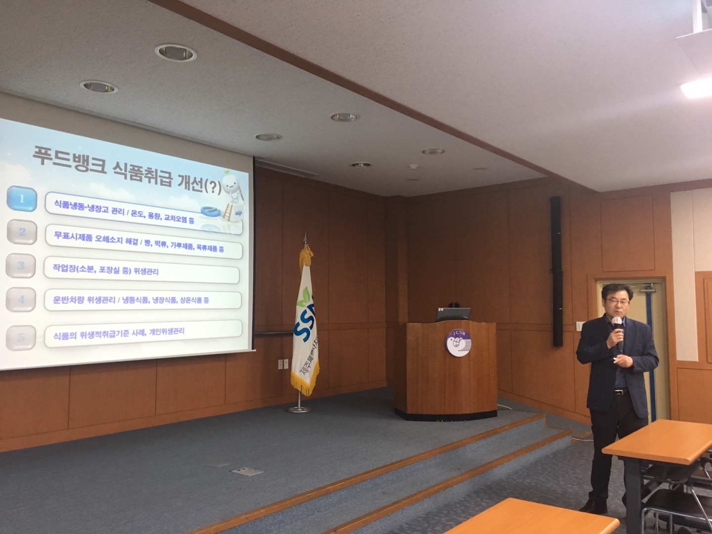 이날 교육은 기부식품관리시스템(fms) 교육(제주광역푸드뱅크 김현미팀장), 개인정보보호법(법률홈닥터 황인철변호사), 기부식품위생교육(제주시 위생관리과 유창수 계장)으로 진행되었습니다.