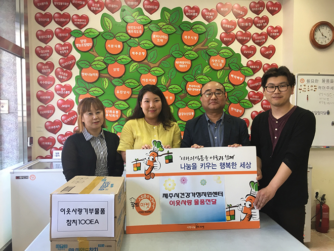 이날 물품 기부는 지난달 제주도 여성가족과와 제주시건강가정지원센터가 주최한 '2017 가족문화축제'에서 열린 '수눌음 벼룩시장' 수익금 10%를 기부해 주신 것이라 더욱 뜻 깊었습니다.