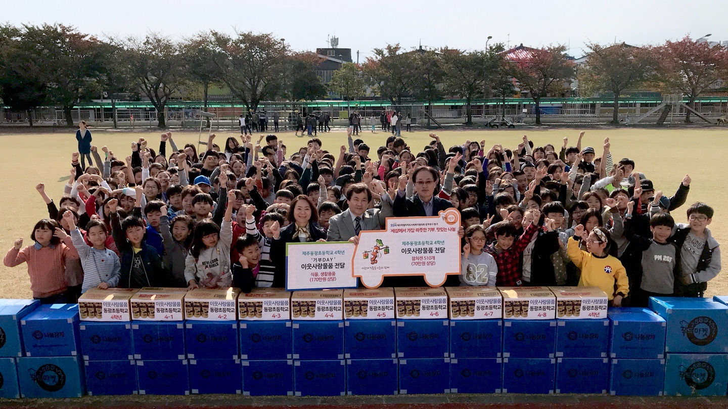 이날 이웃사랑 물품은 2017 JEJU 푸드뱅크 식품나눔캠페인 '기부데이'와,