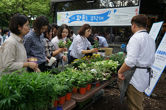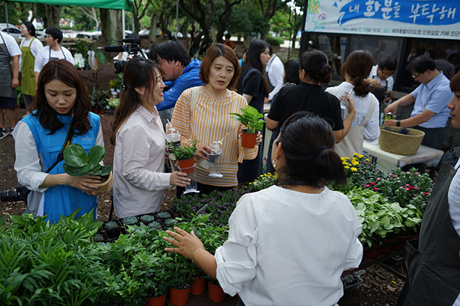 지난 14일 제주도청 민원실 앞 카페 인근 녹지에서 제주특별자치도사회복지협의회(회장 고치환)와 장애인직업재활시설 일배움터(원장 오영순)가 공동 주최하고 제주사회공헌 네트워크가 주관하는 ‘내 화분을 부탁해’ 행사를 개최했습니다.